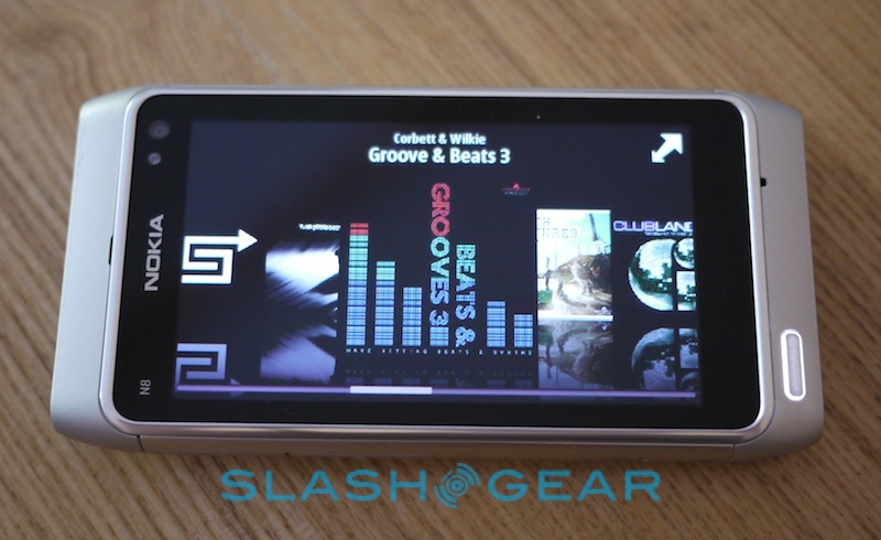 We prefer Symbian^3's music app UI, which has a Cover Flow style carousel of album art when the N8 is held in landscape orientation. The ARM11 processor had no problems keeping up with a large number of images as we flipped through. In the video app, you get a simple list of clips instead, broken down into those recently watched, recently captured and the rest. There's also access to video content on the Ovi Store and on YouTube, the latter opening up the video site's mobile page in the N8's browser.