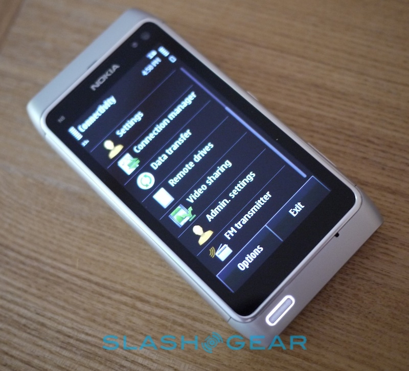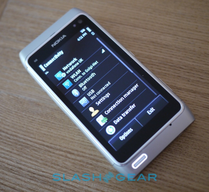 Other wireless options include WiFi b/g/n and Bluetooth 3.0, together with an FM radio and FM transmitter, plus there's GPS and A-GPS with support for Nokia's new WiFi positioning system that promises quicker and more accurate location fixes while indoors. Finally there's an accelerometer, digital compass, proximity sensor (for turning the display off while you're holding the phone to your face) and an ambient light sensor (for automatically adjusting the backlight).
