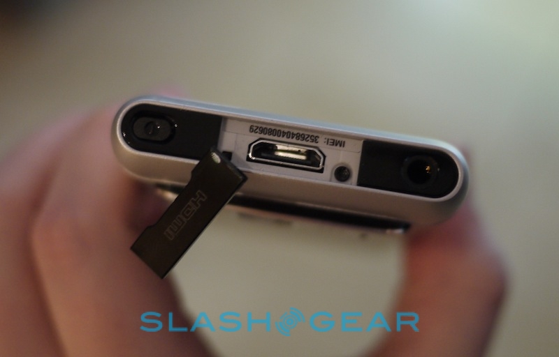 On the top edge there's a 3.5mm headphones socket – Nokia supply a decent wired stereo headset with in-line call and media controls, and earbuds that actually stay in your ears – together with the power/standby button and, under another flap, a mini HDMI port. This requires an (included) adapter to turn it into a full-sized HDMI port.