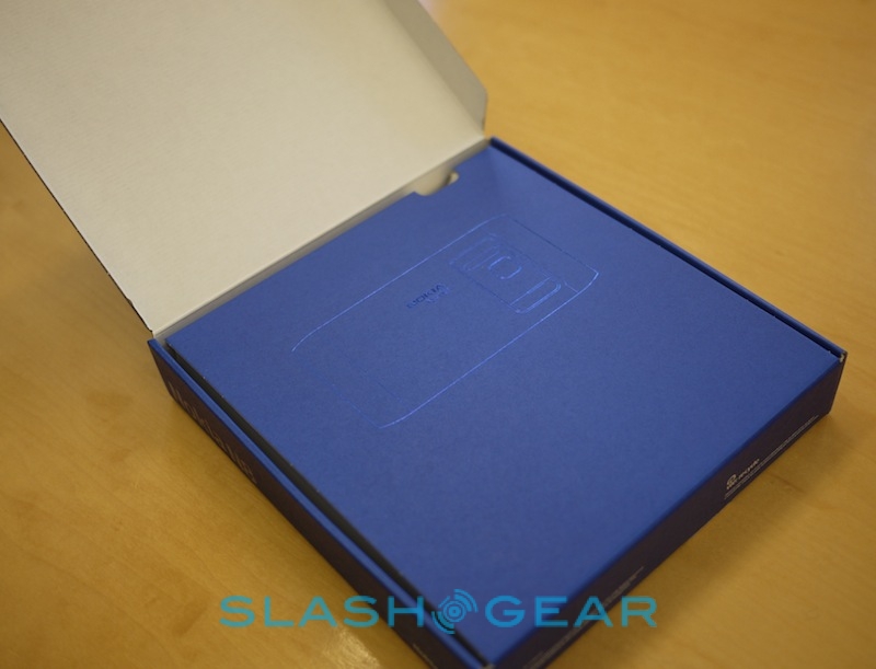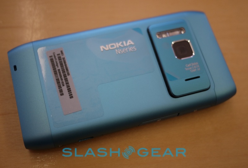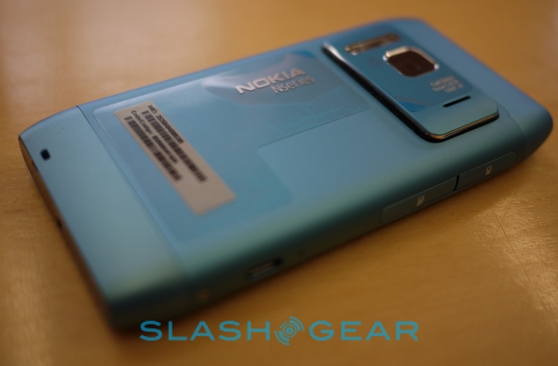 Interestingly, it looks as though there have been some minor changes in production since we last saw the blue N8. Whereas the original color was more like the dark, rich blue of Nokia's packaging, the production N8 is a lighter, more powdery blue. It's not unpleasant, but it's noticeably different to what the company were showing before; you can see some clearer shots in the gallery below.