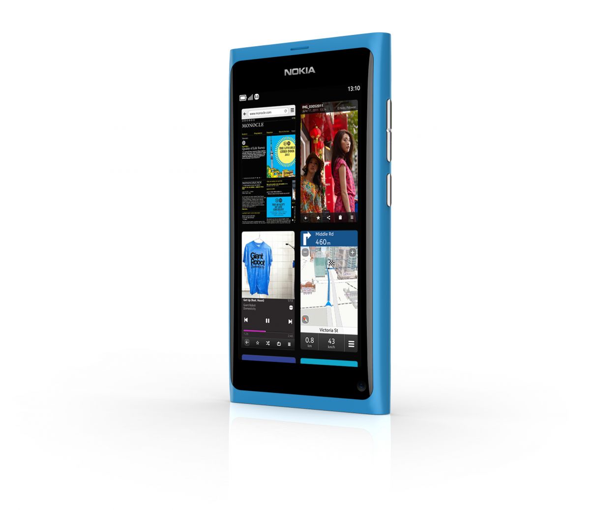 The N9 runs MeeGo 1.2 Harmattan, a blend of the company's MeeGo and Maemo projects. Physical controls are limited to volume and camera: the homescreen is accessed with a swipe, with three panes showing apps, notifications and social networks. There's turn-by-turn navigation with Nokia Maps, and a dedicated Drive app for in-car use.
