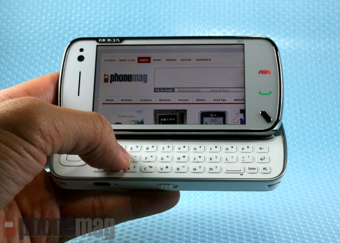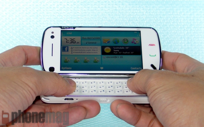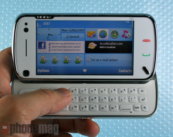 Less impressive is the touchscreen, which in the case of the N97 uses resistive rather than capacitive technology. It's not as responsive as the iPhone or Palm Pre, and that – coupled with S60 5th Edition's odd way of requiring two taps (one selects, the other activates) to load apps – can make for a mildly frustrating experience. The hardware keyboard, hidden under the tilt-and-slide top panel, is shallow with little key-travel, and has a squared-off layout that's trickier at first than a traditional offset arrangement.