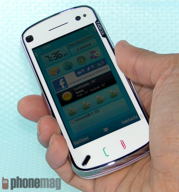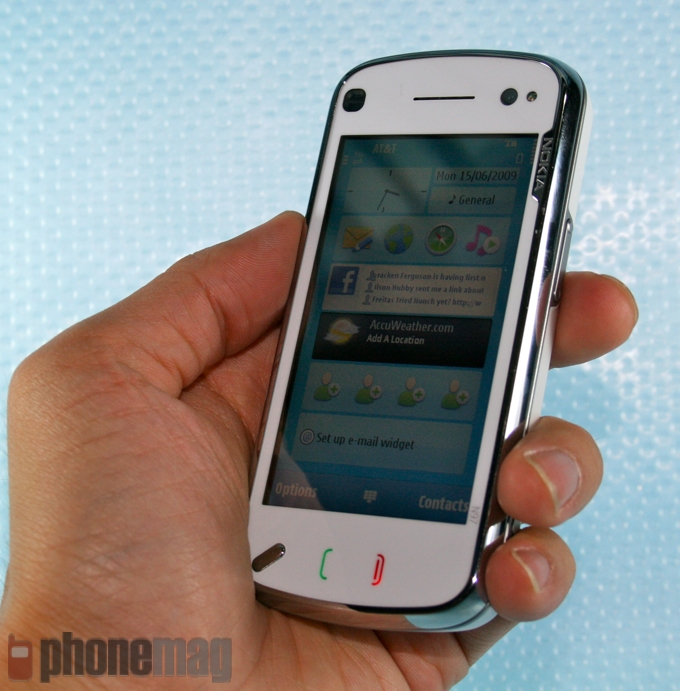 Getting early praise are the N97's homescreen widgets, with the phone coming preloaded with Facebook, weather and Exchange email apps that can all leave an information shortcut on the main display. There'll be more to download in the Ovi store, too, which unsurprisingly gets a shortcut on the N97.