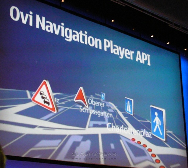 - Ovi Navigation Player API – allowing developers to bring Nokia's industry-leading walk and drive navigation features to their applications, including pedestrian navigation, turn-by-turn car navigation and route planning. This makes it possible for content creators to create applications that take the consumer to his destination of choice – be it to a friend's location, a landmark, a restaurant, or the bus stop.