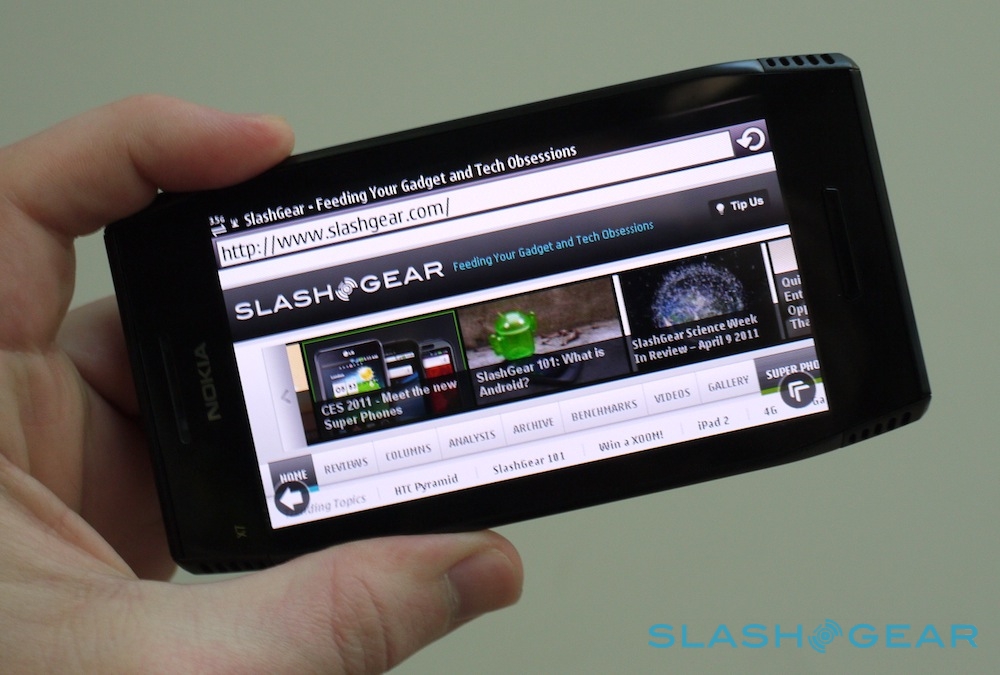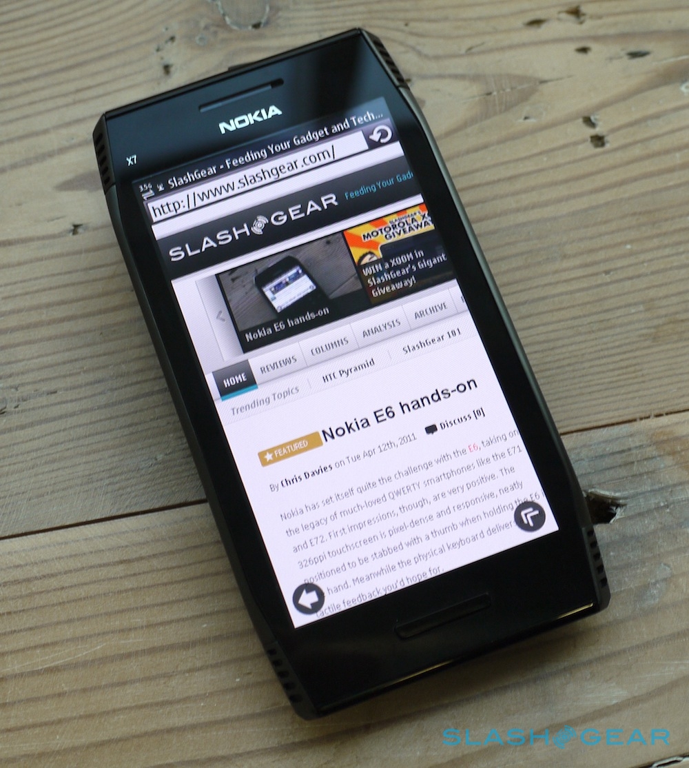 The thought of Nokia and gaming may bring to mind terrible memories of taco-shaped N-Gage, but the X7 looks set to change some opinions. Surprisingly waifish in the hand, with distinct tapering edges leaving it feeling like a crisp metal slice, the angular chassis (and Symbian OS) will probably polarize opinion nonetheless.