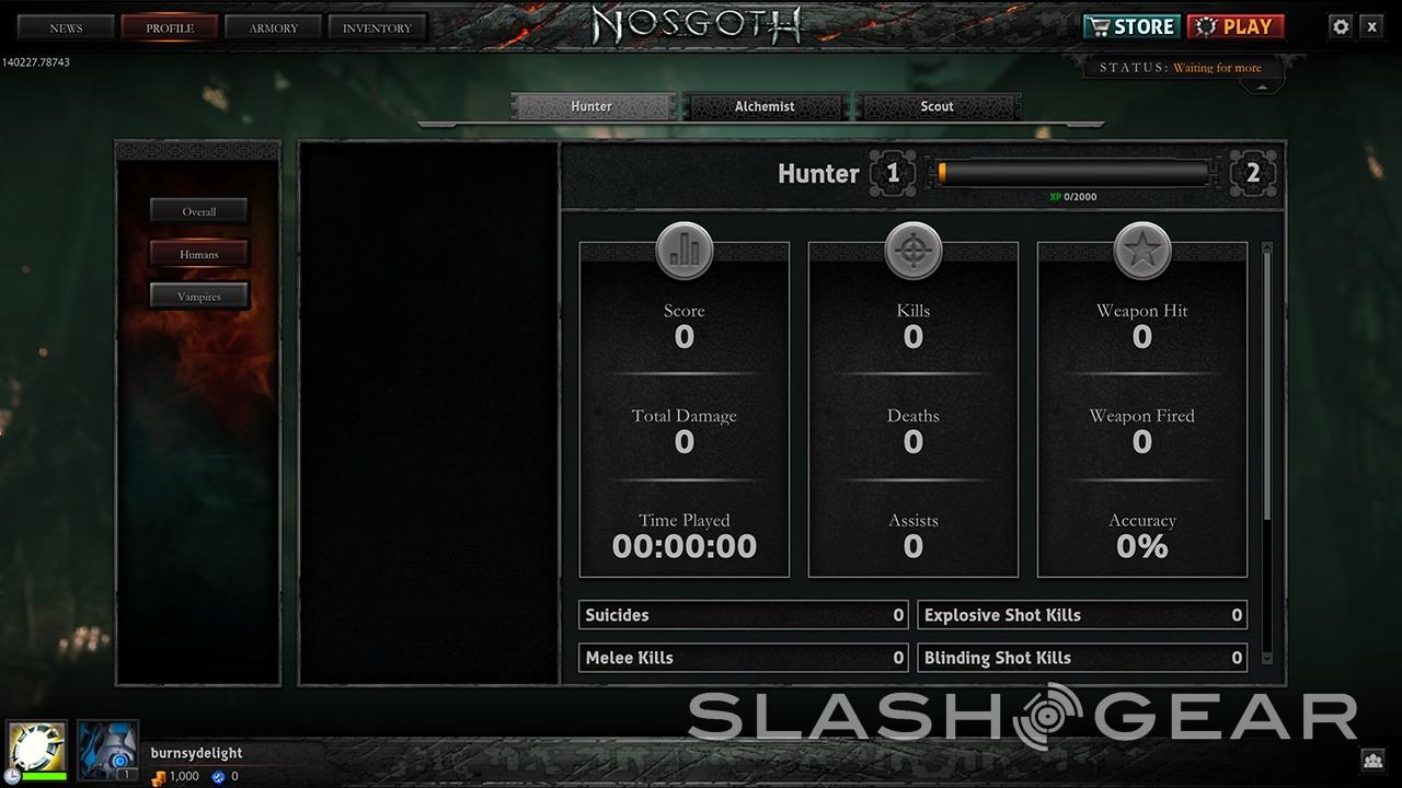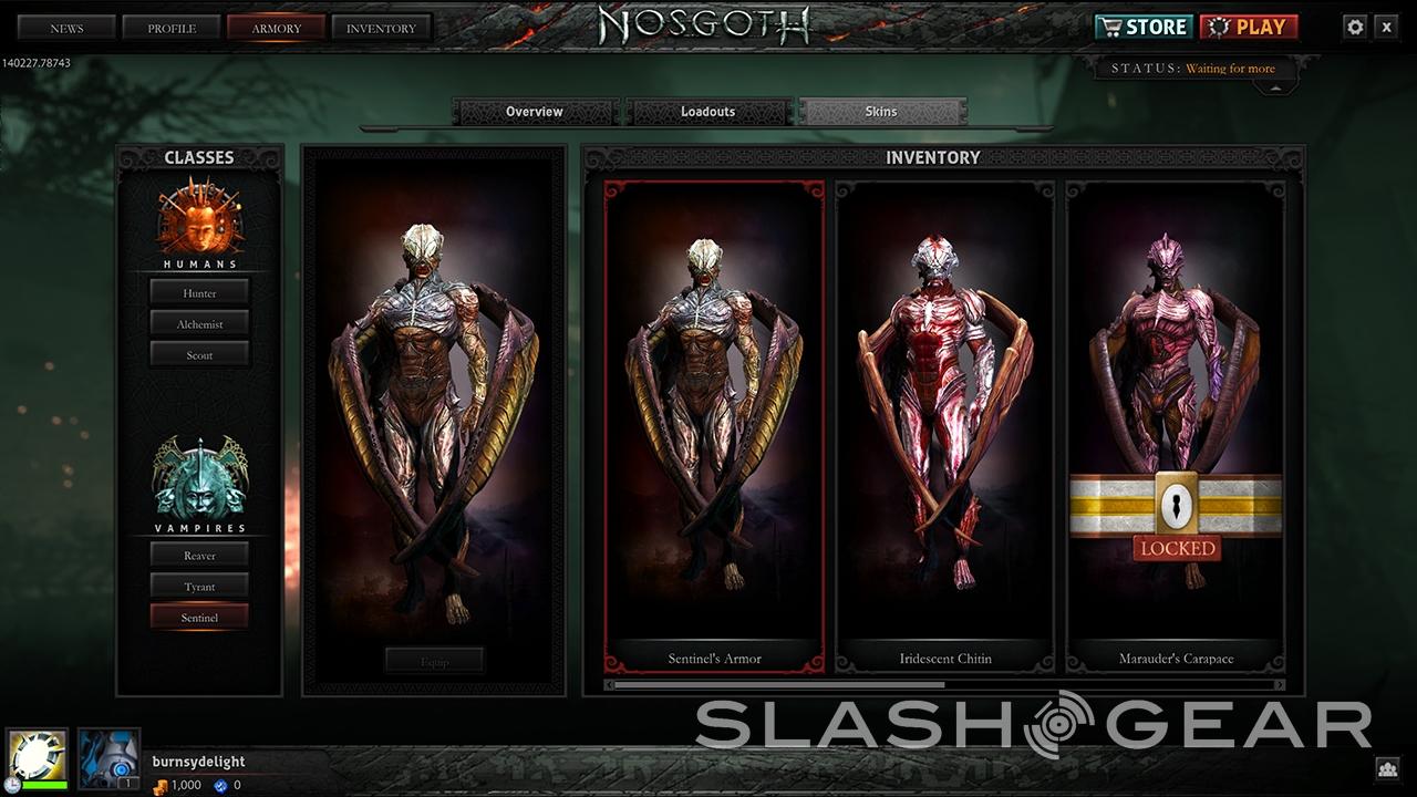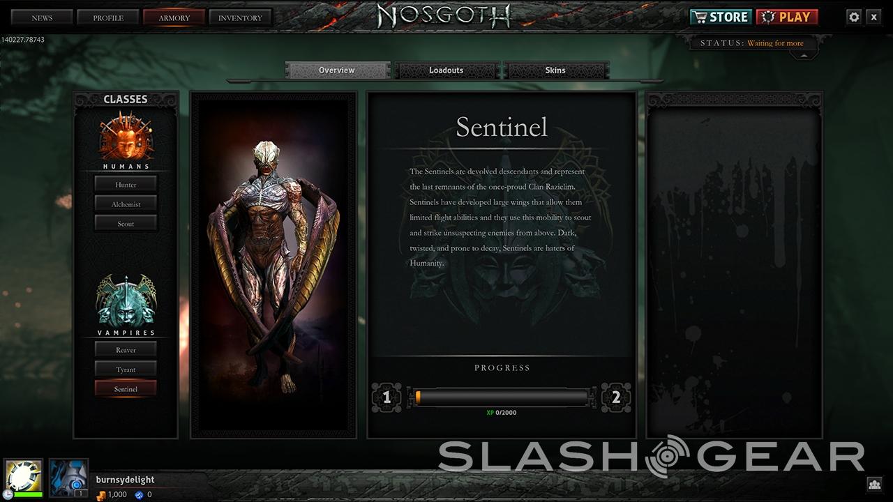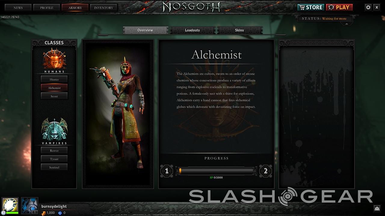 For the Humans fight an Alchemist, Hunter, and Scout, while for the Vampires fight a Sentinel, Tyrant (massive), and Reaver. The Sentinel can fly, but isn't as robust as the Tyrant, while the Reaver stands as the most balanced of the Vampire crew – from what we've been able to tell so far, that is. Meanwhile the Alchemist has a collection of high-powered spells for magic while the Scout has the ability to aim with concentration.