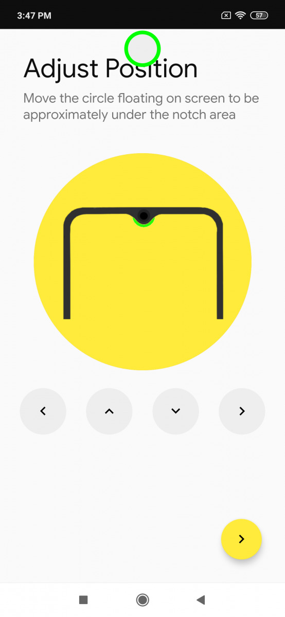 Even if you can drag and drop the circle during initial setup, which you can't do, you'd have to still tap on the direction buttons to make sure the indicator is exactly where it's supposed to be. Sadly, it seems it's not possible to simply just tap and hold to move the circle. You'd have to tap on the buttons repeatedly to get it right.