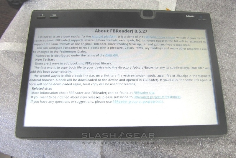 Mobile World Congress may have a cellular-focus, but that doesn't mean it's all about phones. One of the more interesting devices SlashGear have been following this year is Notion Ink's Adam tablet, the Tegra-based Android touchscreen slate that promises to oust all thoughts of the iPad from your imagination, and they're quietly bringing their latest wares to the show. They're latest prototype is still en-route from manufacturing, but to whet our appetite the company sent over some new video of Adam's rotating webcam and its Flash support.Video demo after the cut