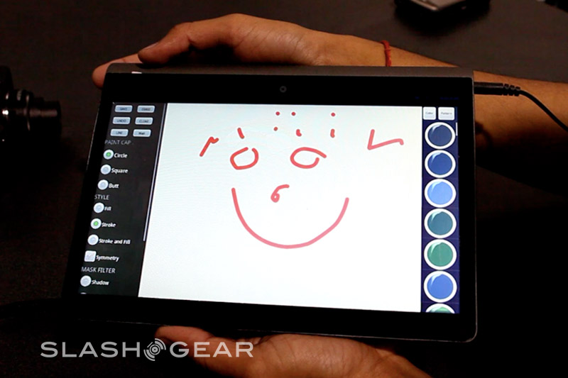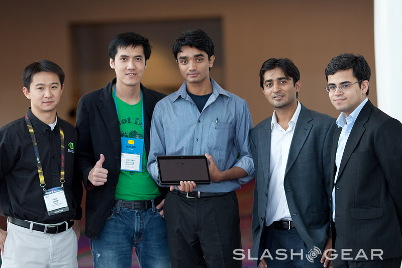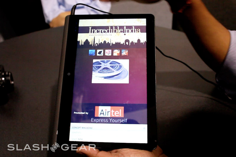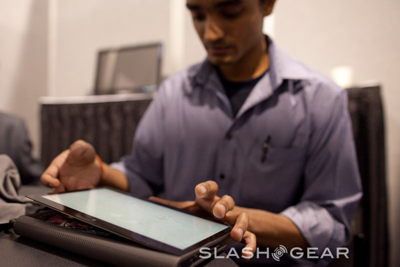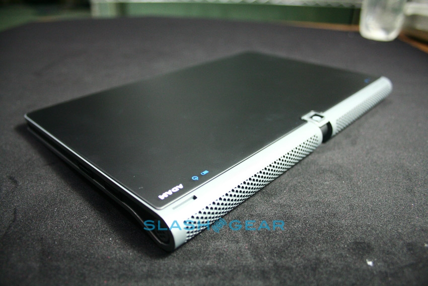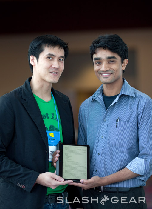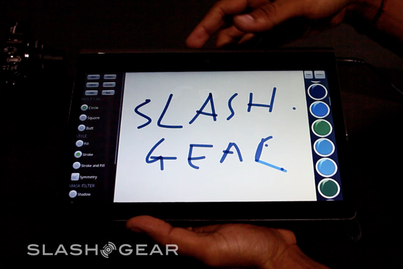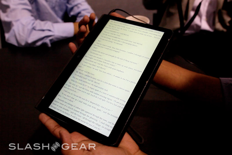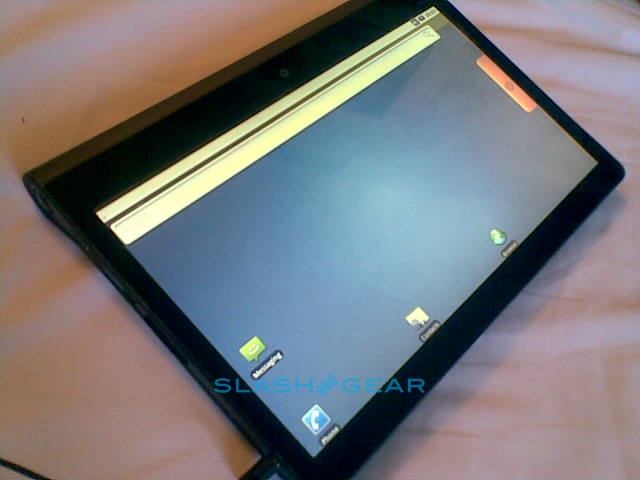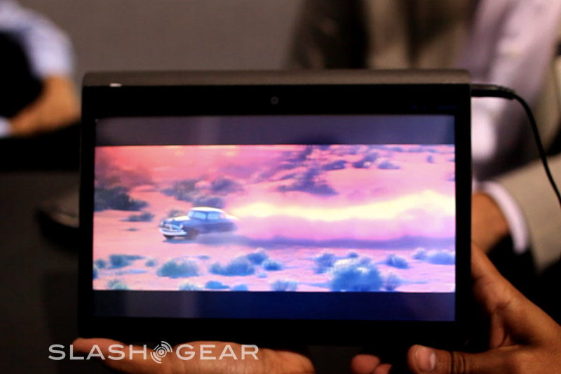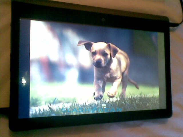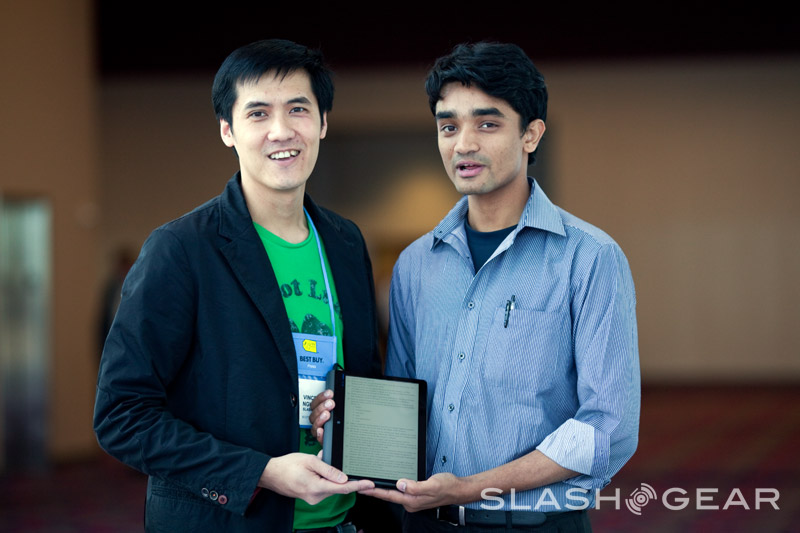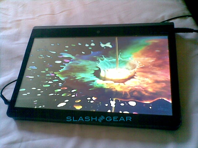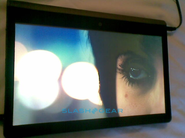 The Pixel Qi display and the frugal Tegra 2 chipset mean that despite the HD video capabilities, the Adam should excel in battery life, too. NVIDIA are saying tablets with regular displays (consuming around 2W) using Tegra 2 will last for around 16 hours of Full HD video with a standard 3-cell battery; Rohan says that, because their display uses just 0.2W in its electrophoretic reflective mode, with that 3-cell battery you'll potentially see up to 160 hours use. Remember, that's not just 160 hours of static E Ink style text, but the potential for video playback and digital content reading in color. Rohan also threw out a quick teaser about some unannounced upcoming features: if Tegra 2 has 12-megapixel camera support, what might you use that support for on a tablet? We're stumped right now, but we reckon SlashGear readers might have some suggestions.