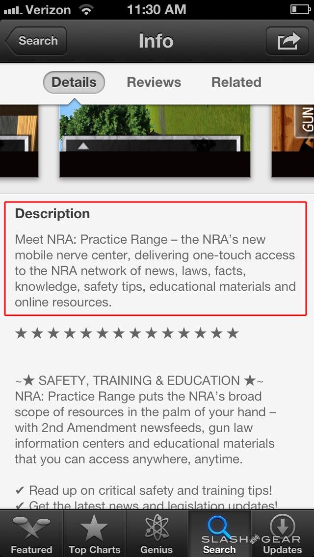 Of course when NRA executive vice president and CEO Wayne LaPierre spoke back on December 21st (as quoted from GeekoSystem) about violent video games was certainly not meant to apply to their own NRA-branded app releases:
