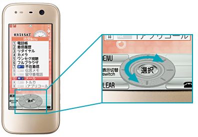 There's also GPS and Bluetooth, together with USB 2.0 connectivity and automatic volume control via an ambient noise sensor; storage is courtesy of microSD cards. Navigation with the slide closed can be done with the F-03A's on-screen scroll-wheel.
