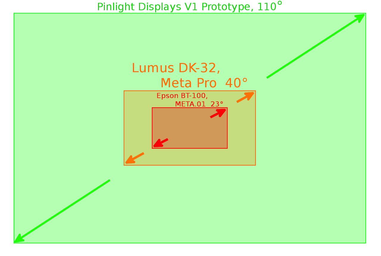 By tiling multiple points, Pinlight Displays can offer a 110-degree field of view, considerably broader than rival glasses. The upshot of that is more space for digital graphics to be overlaid onto your line of sight, rather than squeezed into just the central portion of the screen.