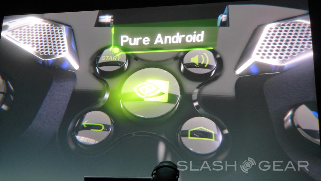The world's first custom-based reflex system lives inside this device, this understanding and knowing when you set the device down so it can stop rumbling around, and right on par with a dedicated Jambox – so sayeth Huang. This machine works with Android and is able to "drop back into Android" at a press of the SHIELD button right up front and center.