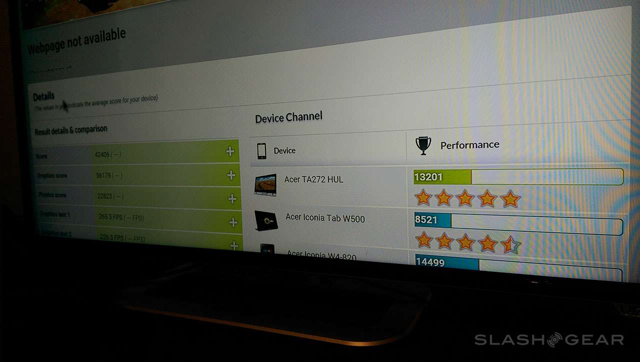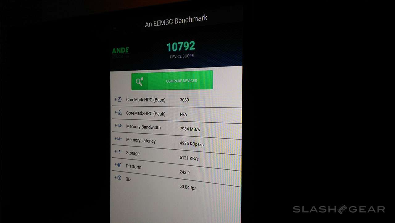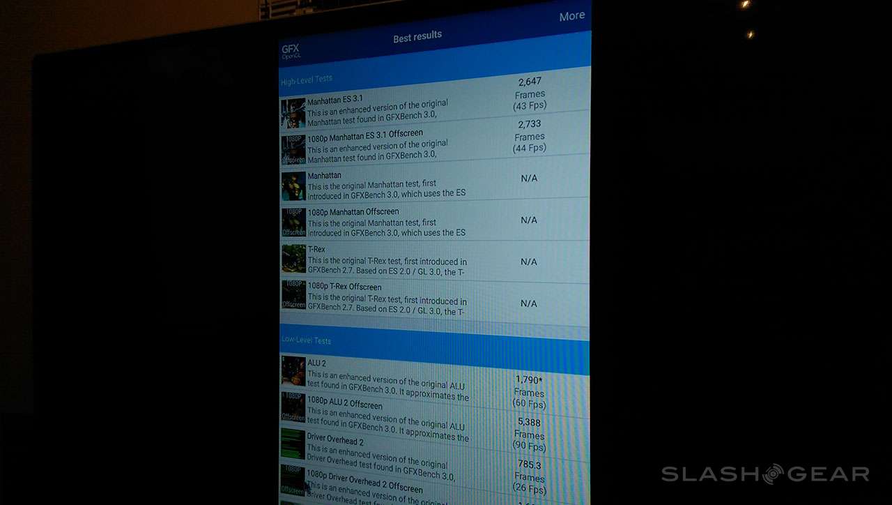 We're not going to discuss benchmarks here at length simply because we're not working with a final consumer unit. This is still a developer unit, one running benchmarks before the device is even announced – so we'll be running more in-depth tests once we get our own review unit (likely in a few weeks).