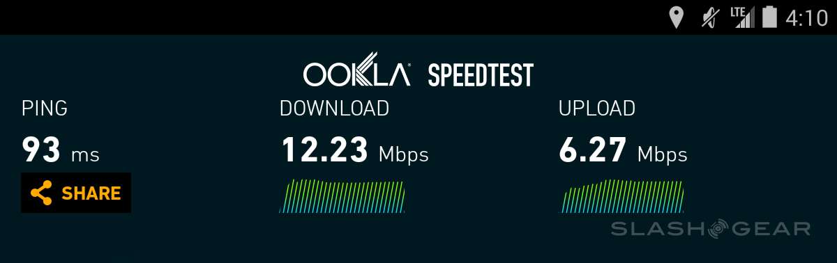 LTE exists inside bands 2, 4, 5, 7, and 17 (1900, 1700, 850, 2600, 700), meaning you're able to roll with AT&T as well as T-Mobile USA LTE inside the United States. Have a peek at a couple of AT&T 4G LTE speed tests here and stay tuned as we continue to test throughout the United States.