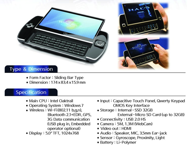 Details on the Ocosmos OSC1 UMPC which Intel briefly flashed at IDF 2010 earlier this year have emerged, set to be one of the first Oak Trail devices assuming the company can find carriers willing to take it on. According to the spec sheet, the OSC1 will have either a 1.5GHz or 1.9GHz Oak Trail CPU running Windows 7, 400MHz GPU with HD decoding, WiFi b/g/n, Bluetooth 2.1+EDR, and a 5-inch capacitive touchscreen running at 1024 x 768.