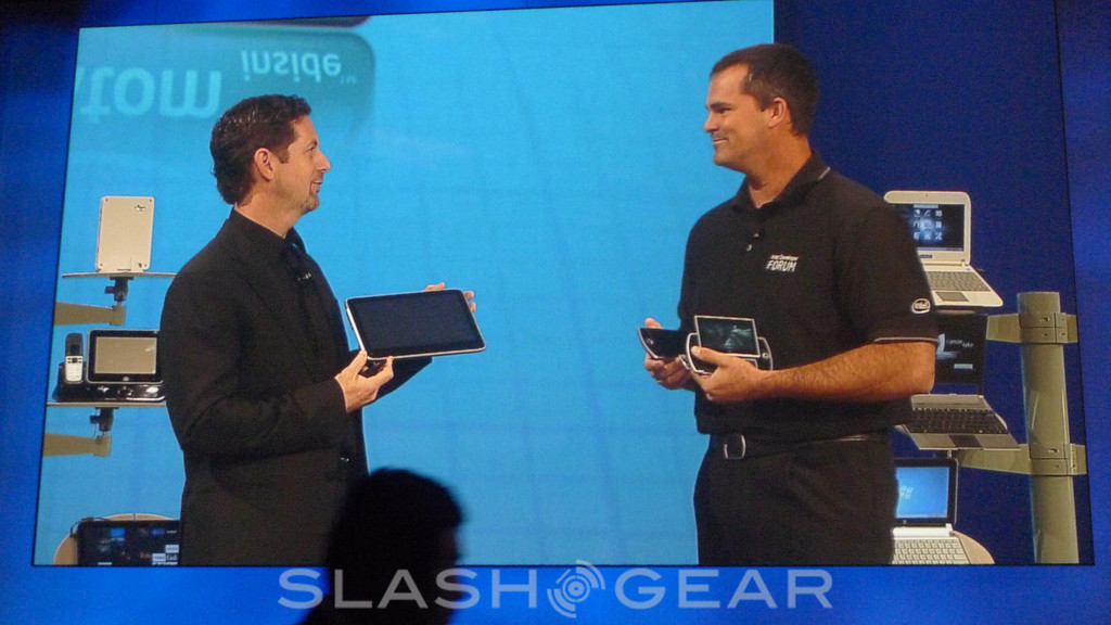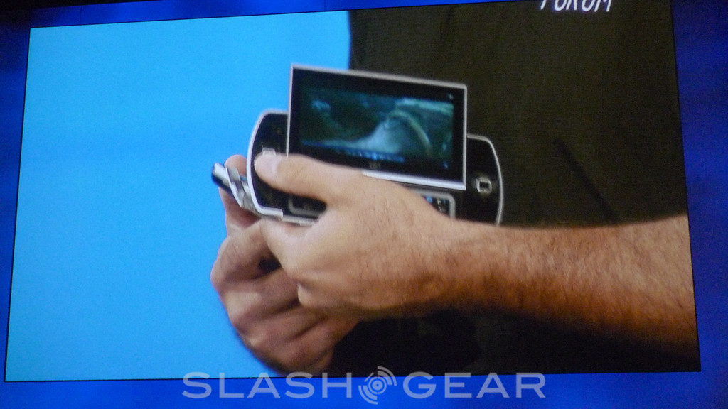 There are also dual cameras – 5-megapixels on the back, 1.3-megapixels on the front – and a QWERTY keyboard revealed when you slide the display up. Connectivity includes HDMI, USB 2.0 (with host support), a 3.5mm headphone socket and a microSD card slot to augment the 32GB internal SSD. The whole thing measures in at 174 x 83.4 x 15.9 mm.