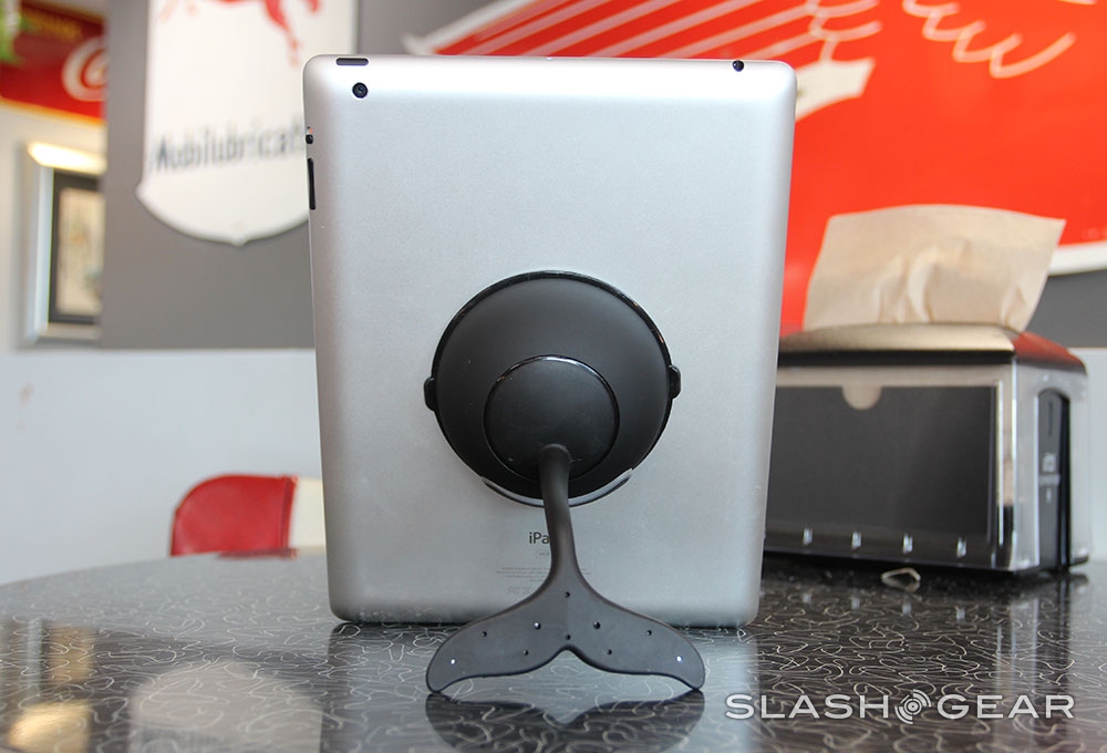 While you can use the bubble bit here separate from the tail, there's absolutely no good reason why you wouldn't want the awesomeness of the WhaleTail to go with this setup. Connect the tail once and you're good to go forever. The whole kit connects to your iPad quite easily, but you're also able to connect it to any flat surface (nearly any flat surface, of course, metal works best) to experience a suction that just cannot be beat. Once the tail is connected, you'll have many, many options for how you can prop up your iPad for all manner of activities.