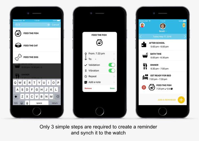 The watch is programmed using a smartphone and offers kids visual reminders with icons and vibration reminders. Octopus is also an assistant that gives kids tips and personal notes and helps parents to remember to remind kids to do things. Octopus is aimed at kids from three to eight years old and supports over 600 icons for different tasks.