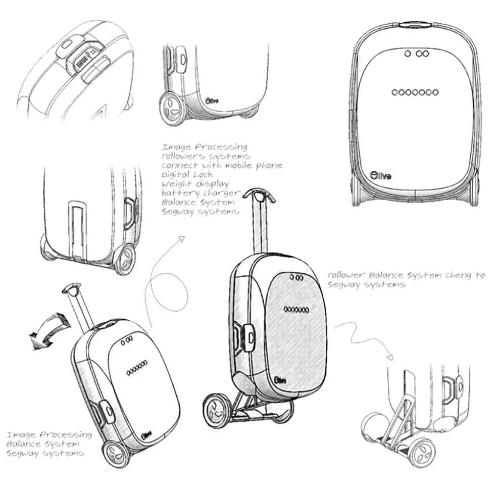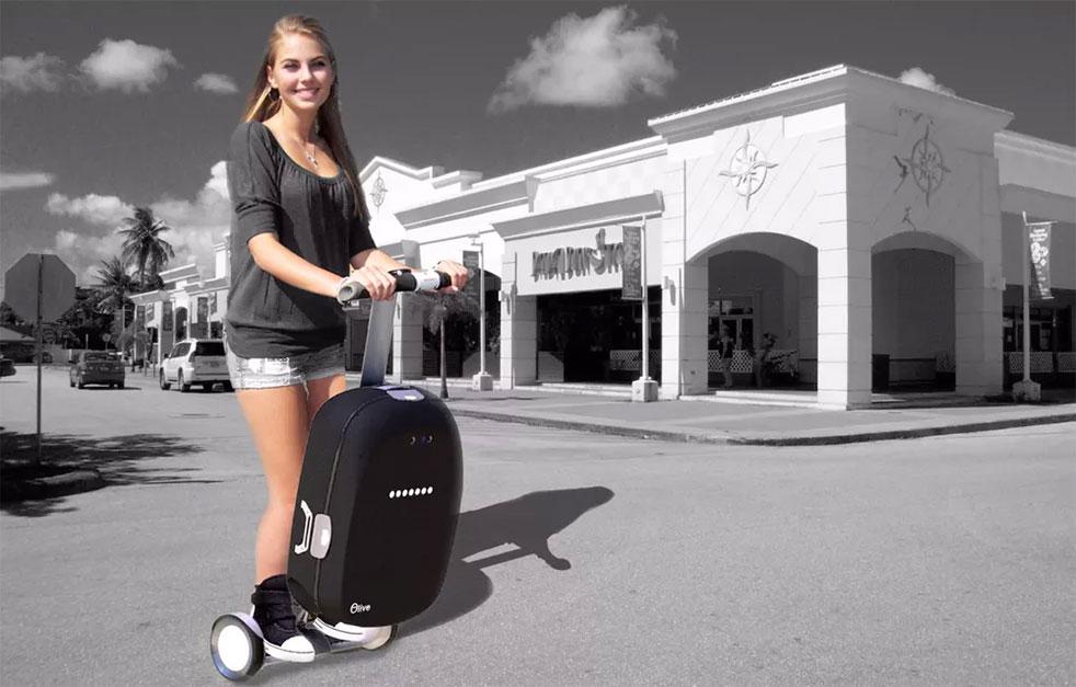 One of the features is a self-balancing ride-on that makes the suitcase akin to a Segway that you can use to get around the airport or hotel when you don't feel like walking. If you don't want to ride on the bag for some reason, it also has an integrated stereoscopic camera that allows the bag to schlep itself through the airport.