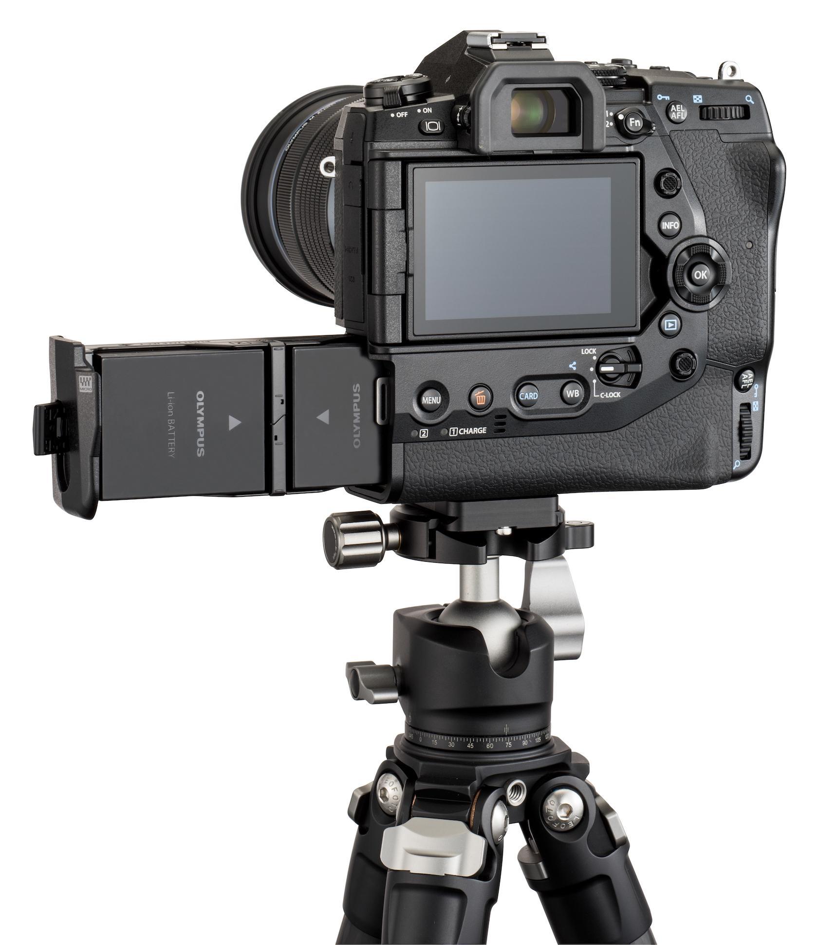 All of these features would be for naught if the camera was prone to dying in the middle of a shoot. Fortunately, the OD-M E-M1X is reliable in that sense, too, with a dual battery system for two BLH-1 lithium-ion packs. It's designed so that they can be inserted or removed even while the camera is attached to a tripod. When it comes time to charge up, though, you don't even have to remove them from the body, thanks to support for the 100-watt USB-C Power Delivery standard.