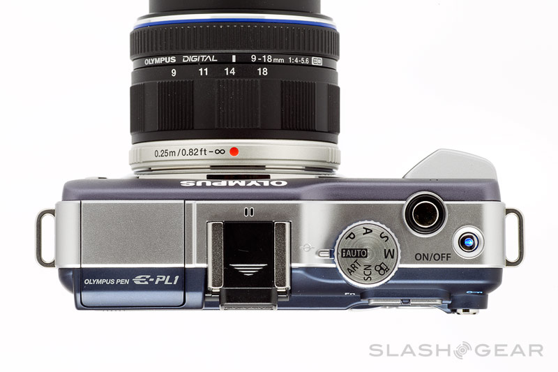Physically, while the E-PL1 obviously lacks the hand-feel of its metal-bodied sibling, it feels anything but cheap. Build quality is high, and we reckon that – unlike most point-and-shoots – the budget PEN could withstand a drop without undue damage. The buttons, dials and general grip design are very well constructed, with the main mode dial having a strong spring-tensioned feel to it; you need to grip it firmly and twist it hard, which we actually prefer far more than what you'd find on an entry-DSLR. Even the battery compartment opens and closes with a clear snap, neatly done despite the cheaper construction.