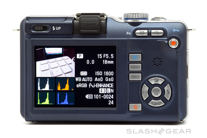 Unfortunately, our main ergonomic complaint concerns the new direct movie record button. While it's generally handy to have, on the PEN E-PL1 it's far too easy to trigger accidentally; a little more depth or slightly more resistance would make all the difference. As it is, you can remap that button so that it does nothing at all or toggles the LCD backlighting.