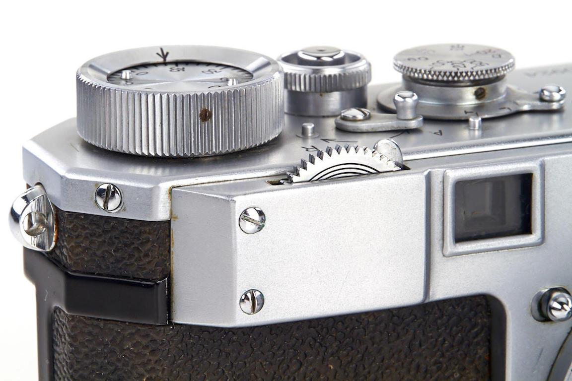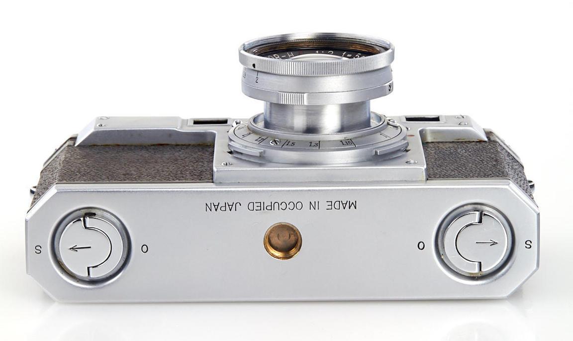 Adding to the listing's value was the fact that the camera included its original F2 Nikkor H lens, as well as the rare double strap case. Also unique is that the engraving on the bottom of camera states that it was "made in occupied Japan," a reminder of its post-WWII origins.