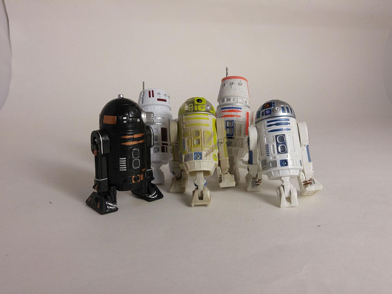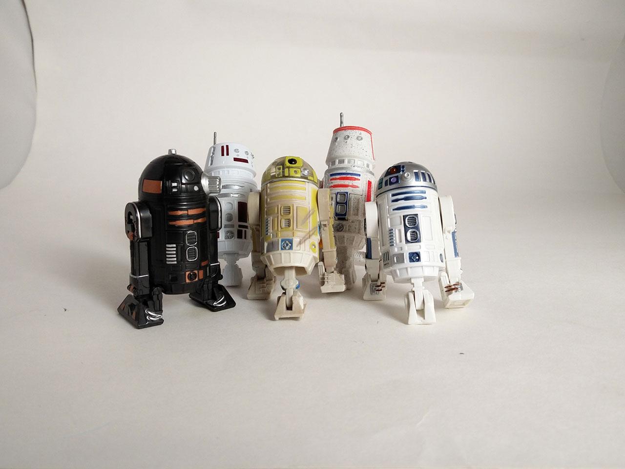 Indoors with a single bright, slightly yellow light here in a studio-like environment, we've captured a set of Droids. These Star Wars action figures should give you just about as good an idea as possible of how much one device's camera differs from the next.