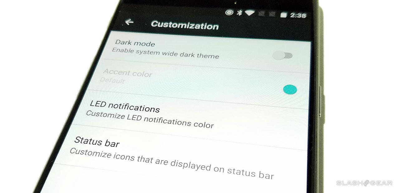 OnePlus 3's implementation of Oxygen OS allows you to turn status bar icons off or on, customize LED notification light colors, and switch on a Dark Mode systemwide. You can change the device's accent color and Android's "invert colors" option is lifted all the way to the main shortcuts pulldown menu.