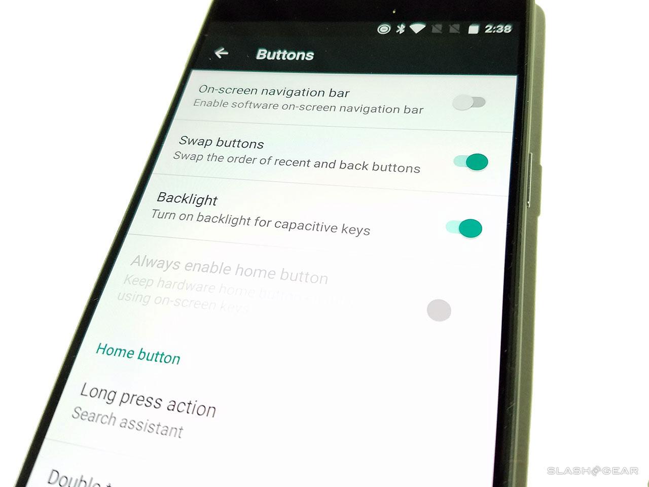 That same menu allows enabling of an on-screen navigation bar if you dont like tapping off-screen, and the ability to swap navigation bar button functionalities. You can turn the backlight on or off, and activate or de-activate your home button.