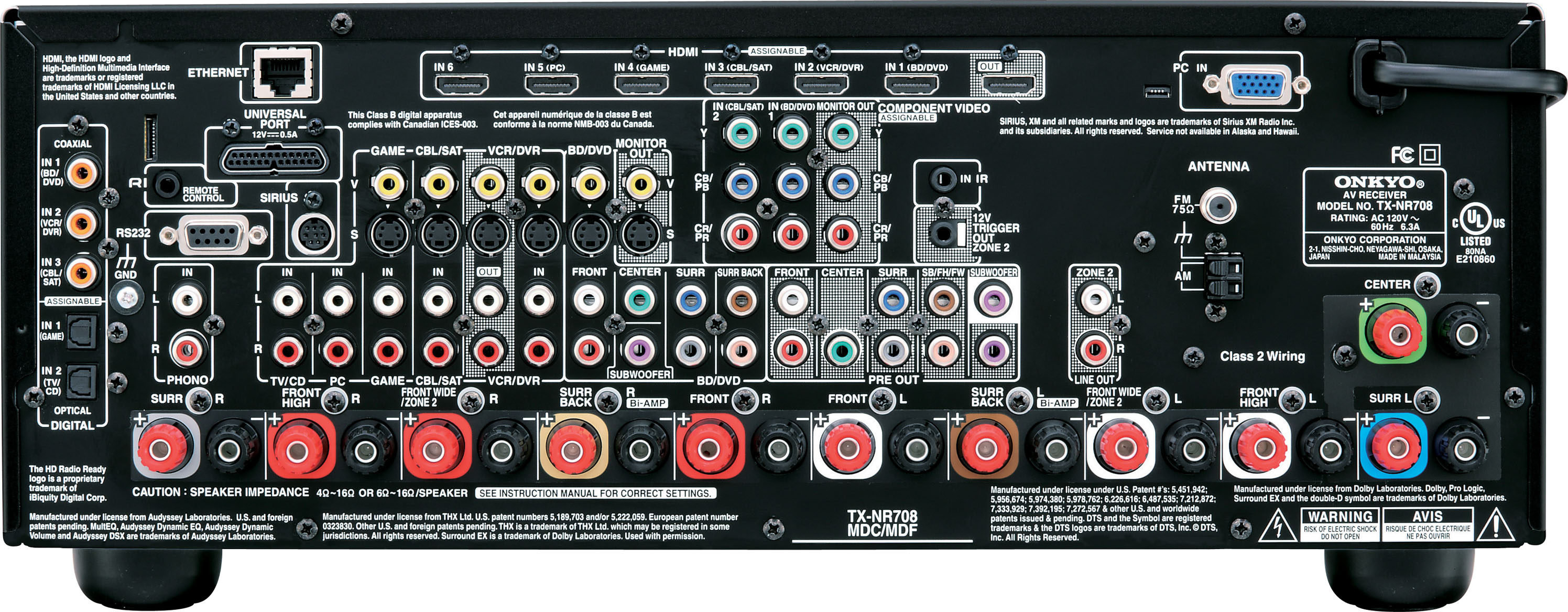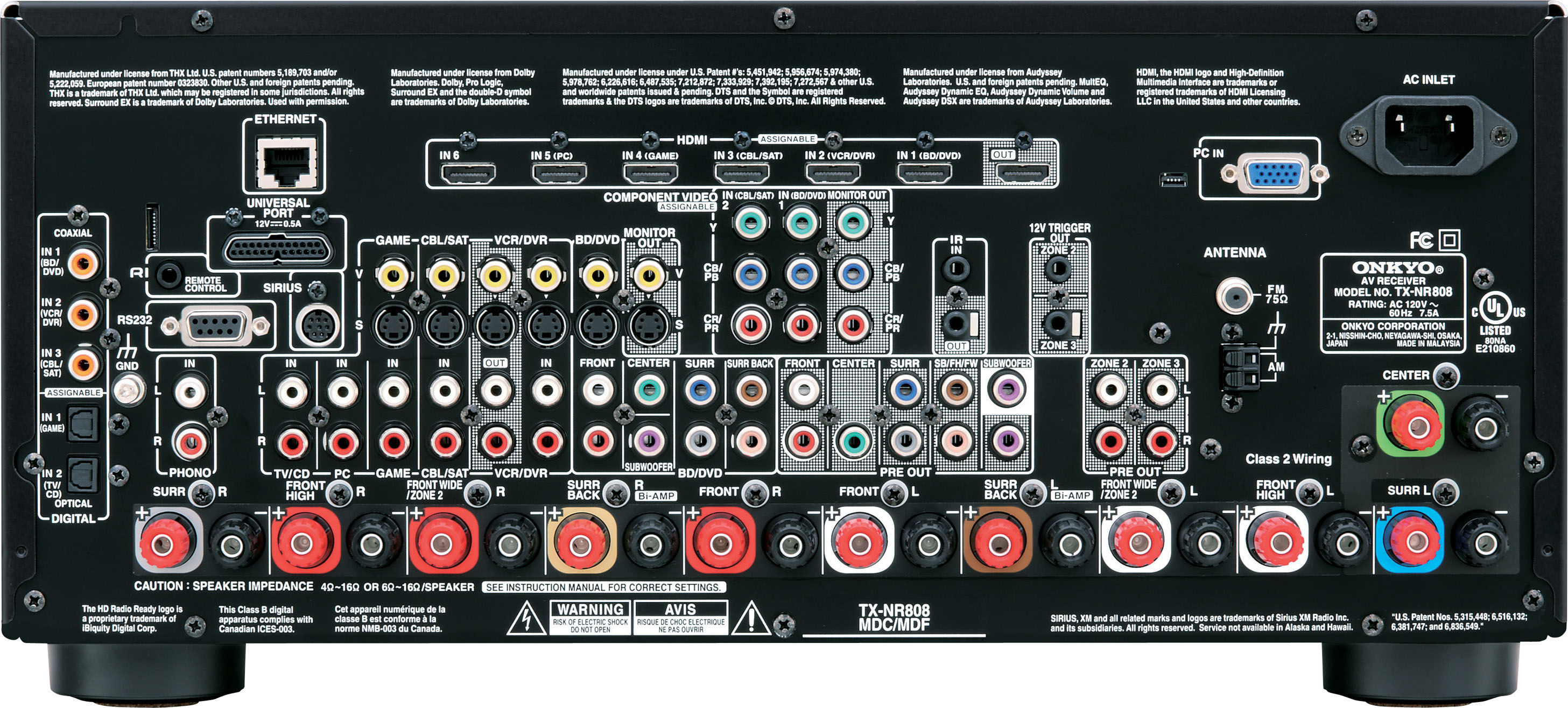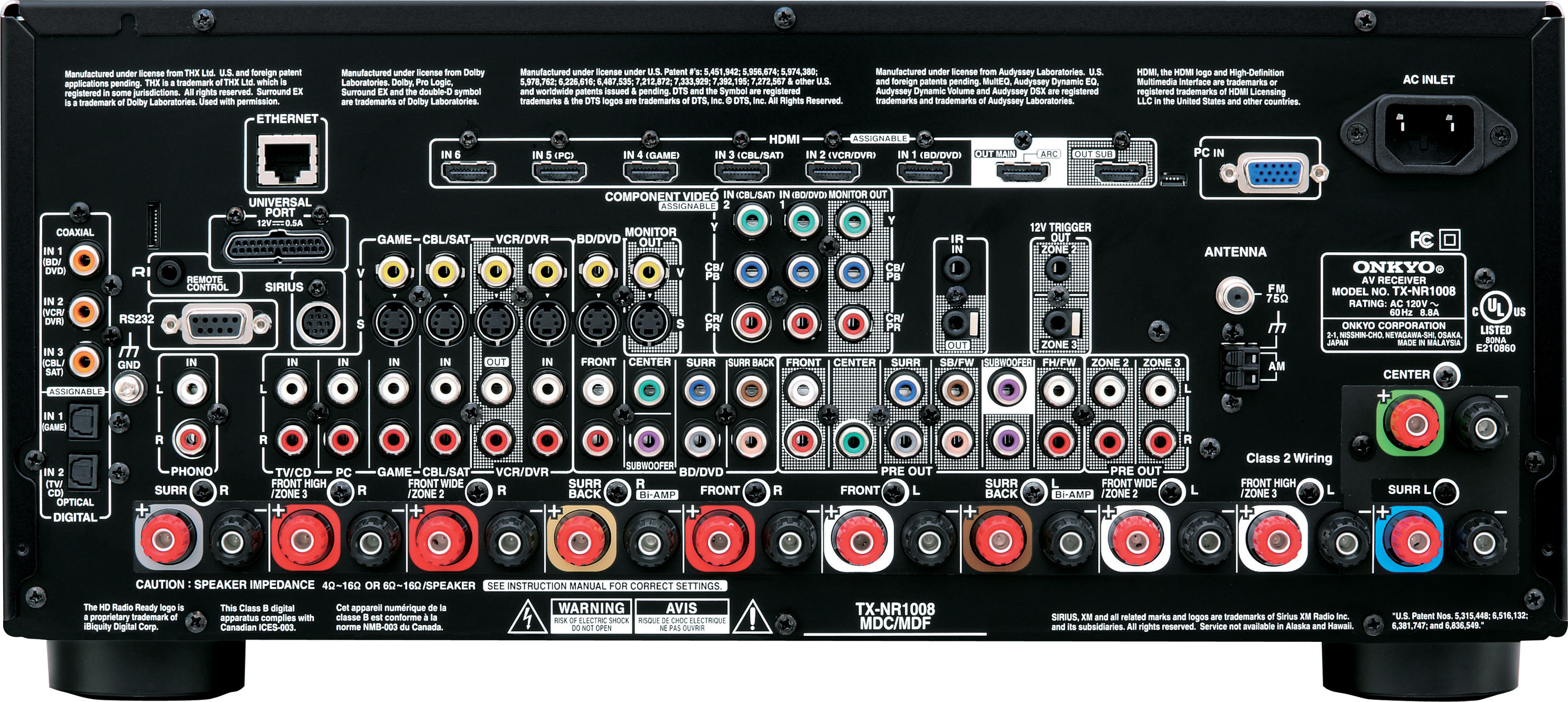 Along with the two extra amplifier channels and one extra HDMI output, the TX-NR1008 offers further advantages over its two siblings. It is equipped with advanced ISF video calibration controls for independent optimization and fine-grained adjustments of every video source. And it sports an extra 192 kHz/24-bit Burr Brown DAC to handle the heavy demands of multi-channel audio processing.