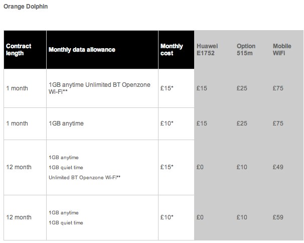 Responding to customer demand, Orange has reintroduced its 12 month price plans on new Dolphin and Racoon packages. Both one and 12 month Dolphin plans now come with a 1GB monthly allowance, and select packages offer an additional 1GB "quiet time" data allowance (from midnight until 4pm) as well as the option of unlimited data through BT OpenZone public WiFi.