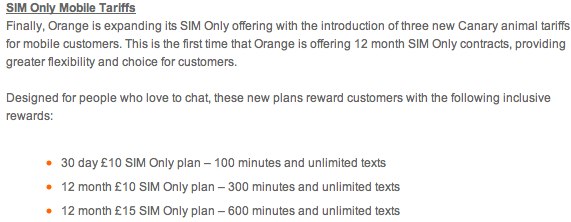 Finally, Orange is expanding its SIM Only offering with the introduction of three new Canary animal tariffs for mobile customers. This is the first time that Orange is offering 12 month SIM Only contracts, providing greater flexibility and choice for customers.