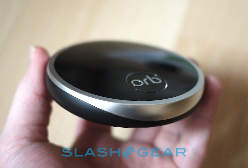 The MP-1 itself is a small plastic disc 3.28-inches across, about the size of a drinks coaster, with a rubberized base and an Orb logo on the top inside an illuminated status ring. Ports and controls are minimal: a miniUSB is used for initial setup and then power, while a 3.5mm stereo output is the only way to hook up speakers; meanwhile the only hardware button is a recessed reset nub on the bottom of the unit.