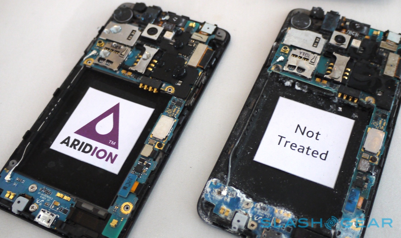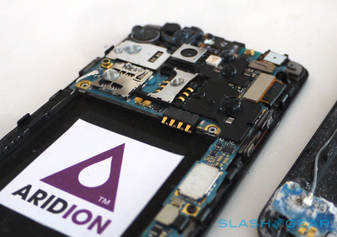 The technology isn't completely new – P2i has been using it to treat boots for various outdoor-wear companies for the past few years – but gadget use is only just beginning to take off. Right now, if you want Aridion in your phone or tablet, you're basically limited to two devices: Motorola has used the treatment technology in its DROID RAZR as well as in the XOOM 2 tablet. However, the company tells us that it's in discussions with other firms regarding potential deals