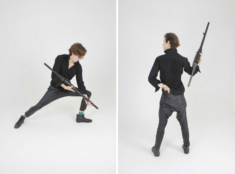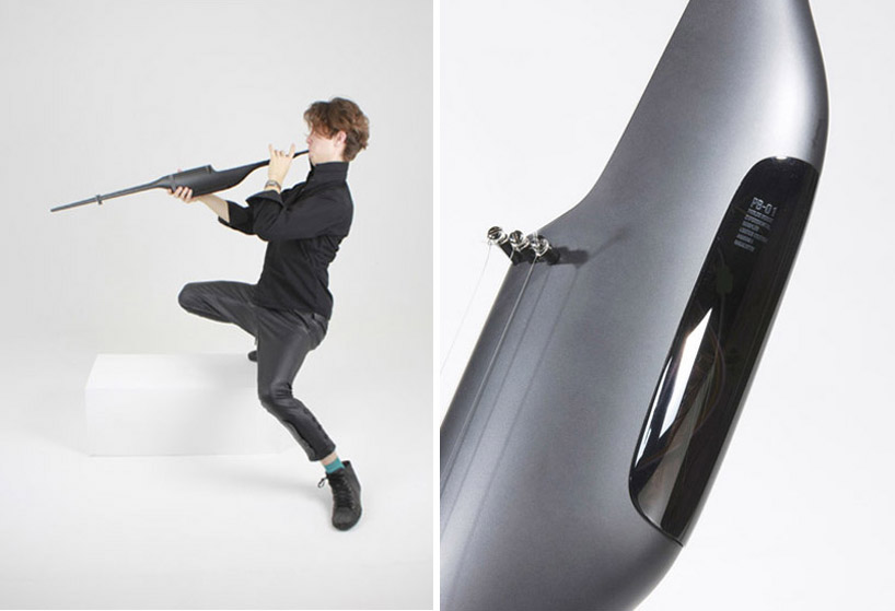 As bizarre instruments go, Rhea Jeong's Pablo's Heart-01 certainly manages to distinguish itself. Looking like a cross between an AK-16 – which the designer claims was a style inspiration – and a particularly skinny electric cello, PB-01 is actually a new performance sampler where audio clips are triggered by playing the physical strings or horn sections of the instrument.