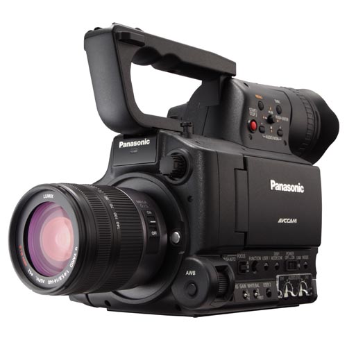 Targeted at the film and video production communities, the AF100 delivers film-like shallow depth of field and the wider field of view of a large imager, with the flexibility and cost advantages of a growing line of professional quality, industry-standard micro 4/3-inch lenses, filters, and adapters. The full HD 1080/720 production camera offers superior video handling, native 1080/24p recording, variable frame rates, professional audio capabilities, and compatibility with SDHC and SDXC media.