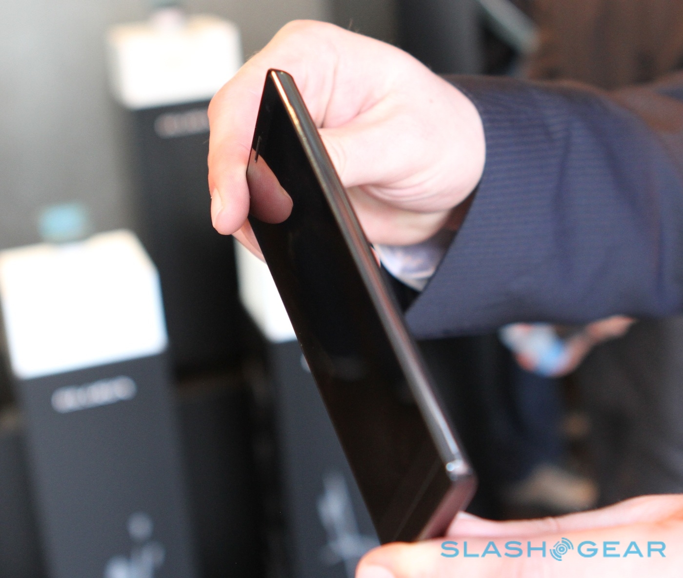 The screen may be larger – 5-inches versus the 4.3-inches of the ELUGA – and higher resolution, at 720p HD (1280 x 720), but Panasonic has managed to keep the thickness down all the same. At 9.6mm it's a little thicker than the sub-8mm ELUGA, but the taller, broader chassis leaves it feeling just as narrow in the hand.