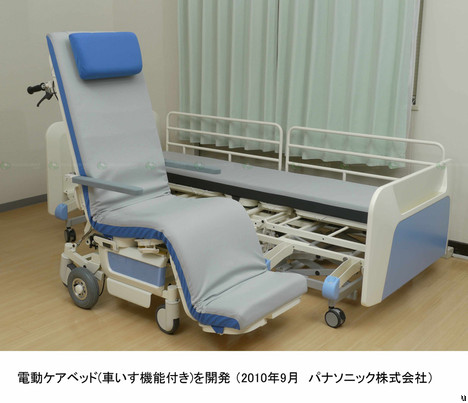 Panasonic's Electric Care Assistance Bed, the Electricbed, managed to wrangle in plenty of praise when it was shown off. The bed was created under the flag of a special project, called New Energy and Industrial Technology Development Organization (NEDO), which is meant to incorporate robots and safety technologies into every day life. This new bed from Panasonic can actually be separated into two parts, and the company managed to simplify the whole design. Removing unnecessary motors and fixtures, while modifying the overall components. The idea is to reduce the risk of moving someone from the wheelchair, to the bed. There are voice warnings and guidance systems, as well as LED indicators, that tell the worker when the bed is able to be separated from the chair.