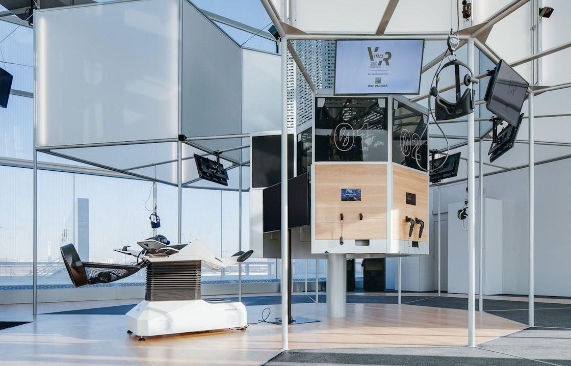 "MK2 VR is the first facility in France dedicated to the best VR experiences in films, documentaries, video games and even flying motion sims," the company told Engadget. Each station has its headset's cables suspended overhead and offers plenty of space to move, allowing freedom of motion. There's also elaborate seats for use with games that simulate activities like flying or rowing.