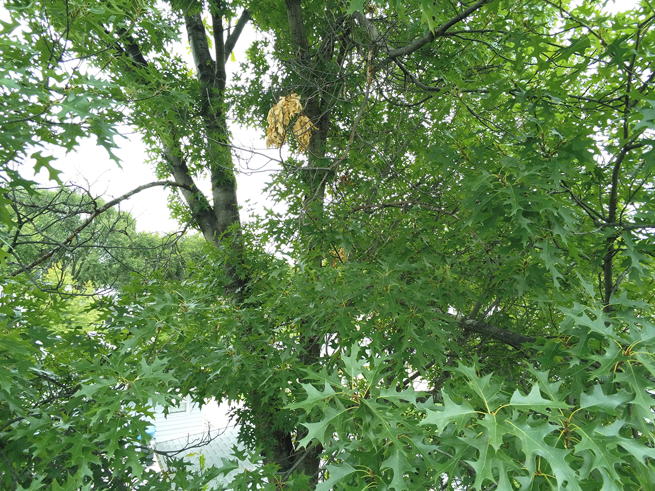ABOVE: Details on a photo taken hovering amongst branches and leaves on an overcast day with relatively low wind. Cut out shows closer detail on same original photo. BELOW: Downward view of yard, taken on overcast day.