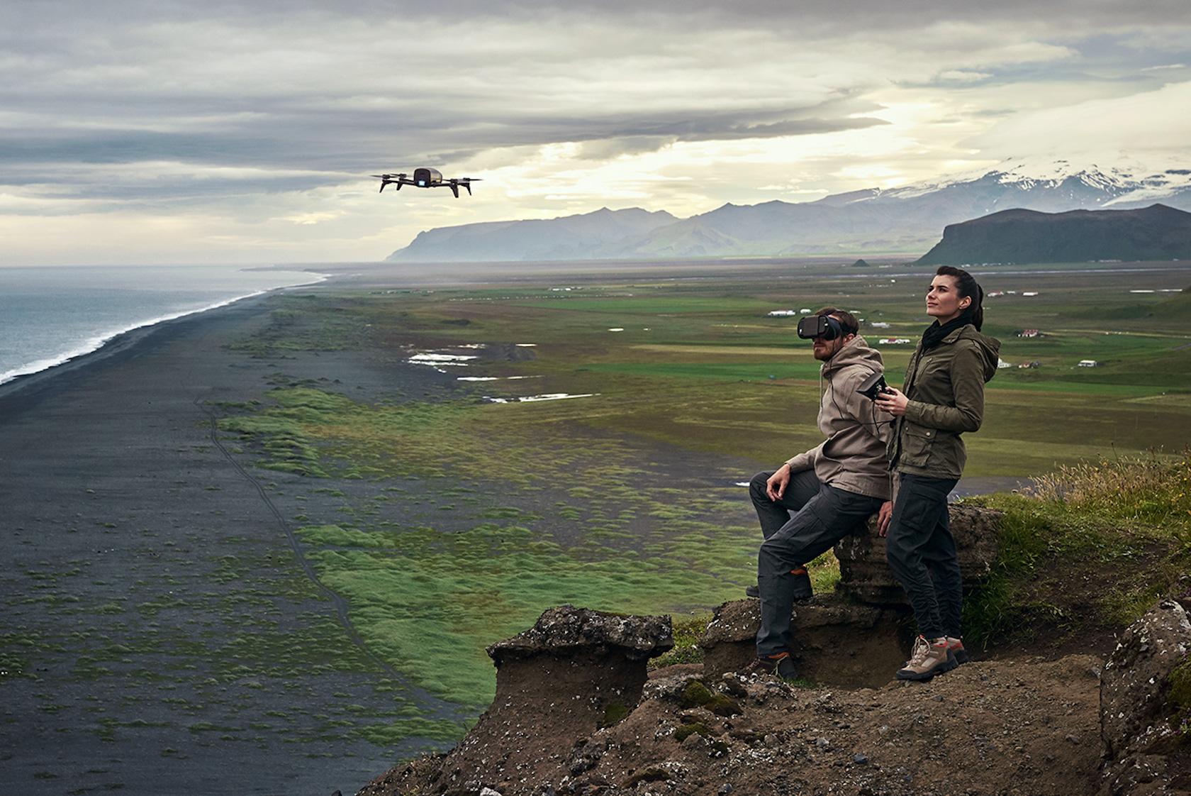 Control is courtesy of the Parrot Skycontroller 2, which can use WiFI to link to the drone from up to 1.24 miles away. Parrot is also bundling its new Copckpitglasses 2, a head-up display that uses a smartphone for its screen. With the companion app, you get a 96-degree frame of view from the drone's camera, along with key data – altitude, speed, distance, and battery status – overlaid on top. Hit the Sight View button, and you can see what's around you, beamed through from the phone's own camera, without taking off the headset.