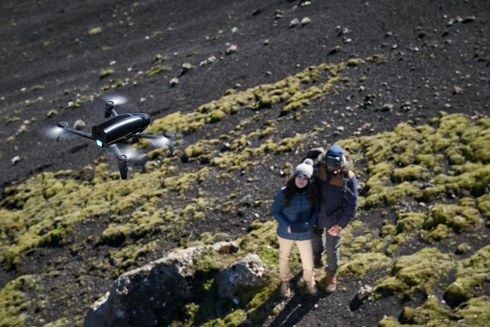 As you'd expect, there's also follow-me functionality, which uses both GPS and visual tracking to keep the operator in the center of the shot. Parrot has a new FreeFlight Pro app to control it all, along with pulling out still images from the video later on.