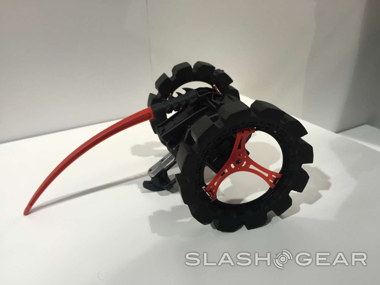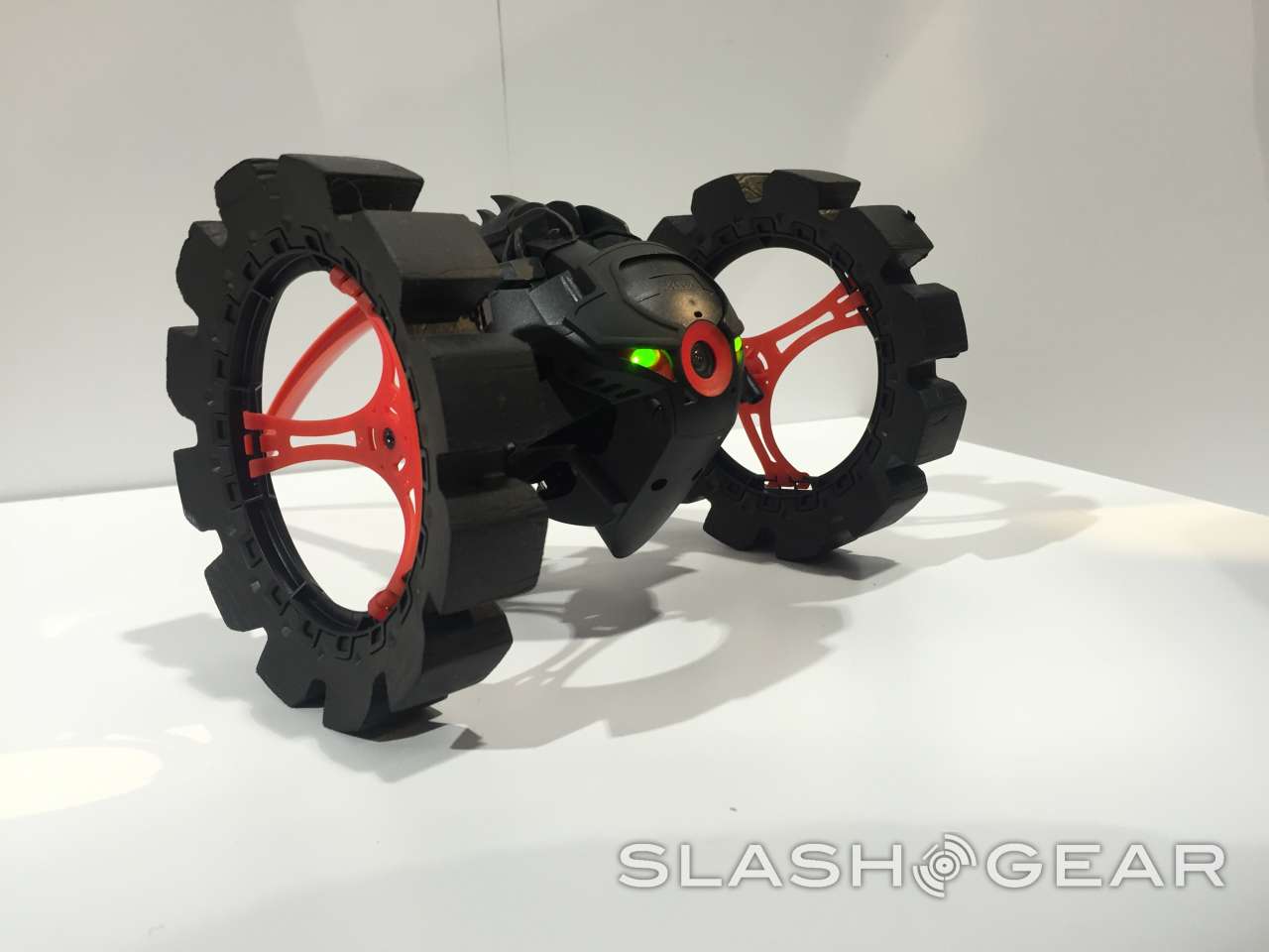 Rolling around the floor is a hybrid monster that mastered flying lessons and ground fighting when it was just a youngster. The Rolling Spider is evolving and has developed headlights as well. Helping you navigate through the sky with bright white LED lights, the flying drone is in prototype stages and Parrot says it'll be seeing much more of an upgrade in terms of software and hardware.