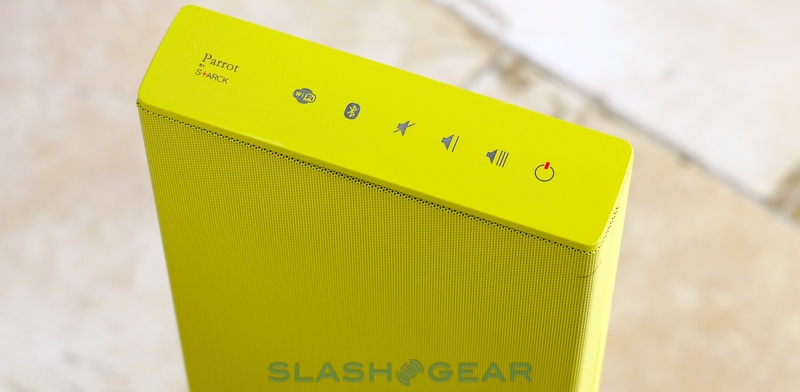 The Zikmu design has been around for a while now – Parrot first unveiled them at the end of 2008, in fact – but the most recent update added a choice of colors and made their software smarter. Each speaker stands almost 30-inches high and weighs 17lbs; in addition to the original black there's now pearl grey, white and the optically searing lime sorbet of our review units. A matching remote control offers the basics – power, volume, play/pause, and track skipping and source selection – and uses RF not infrared for non-line-of-sight operation.