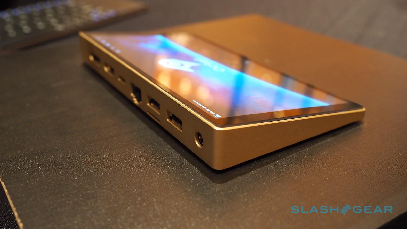 WiFi a/b/g/n/ac and Bluetooth 4.2 are included, and there's a 5-megapixel camera, speakers, and a microphone. Ockel finds room for an accelerometer, gyroscope, and magnetometer inside, too; they might seem like odd inclusions in a desktop PC, but there's also a 3,000-3,500 mAh battery in there too. Ockel isn't confirming battery life yet.