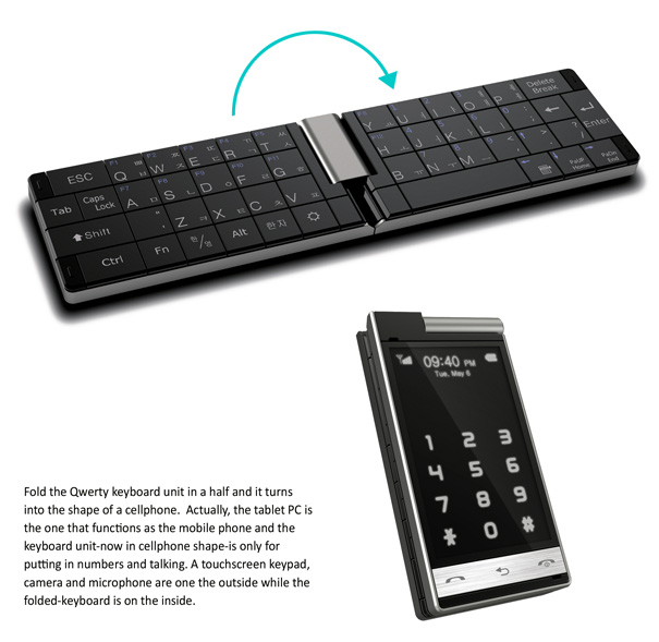 The coolest feature though is the matching smartphone the concept uses that folds open to offer the QWERTY keyboard used with the tablet. The keyboard is wireless and when folded looks like your average mobile phone and can be used to make calls.