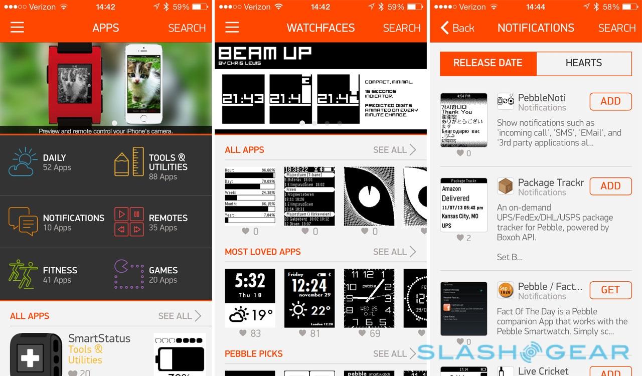 This update allows users to explore a number of new categories for watchapps, including notifications, daily use, tools & utilities, remotes, fitness, and games. Watch out for that Flappy Bird app, it's madness-inciting. Once purchased, app watchapps can be stored in the user's watchapp locker.