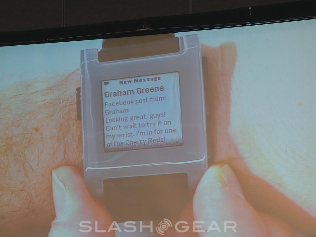 As for message previews, they show your email subject and sender, as well as the content of the message; SMS, meanwhile, shows sender and the full content. Incoming phone calls show caller ID and number at the same time, and you can dismiss the call with a push of one of the side buttons. Phones can also send things like Facebook alerts, and developers will be able to use Pebble's user-ID system to send notifications directly to their subscribers' smartwatches.